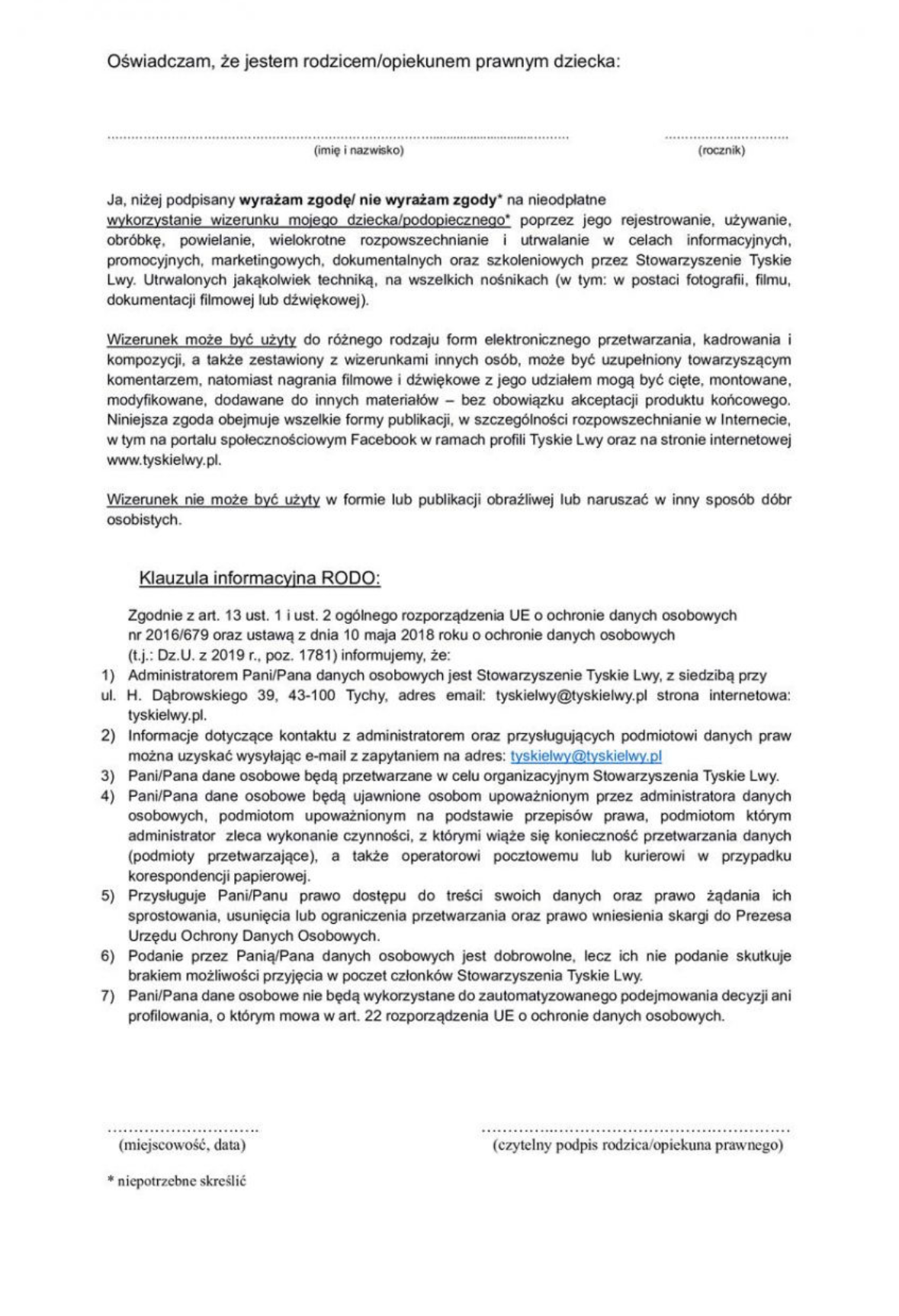 Deklaracja Tyskie Lwy oraz zgoda wizerunkowa.