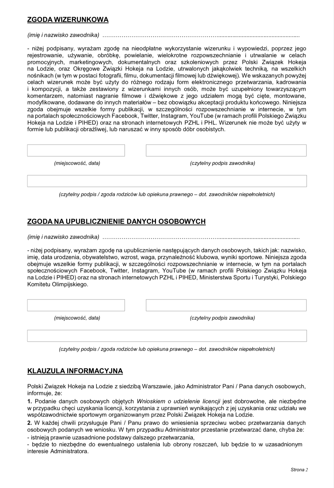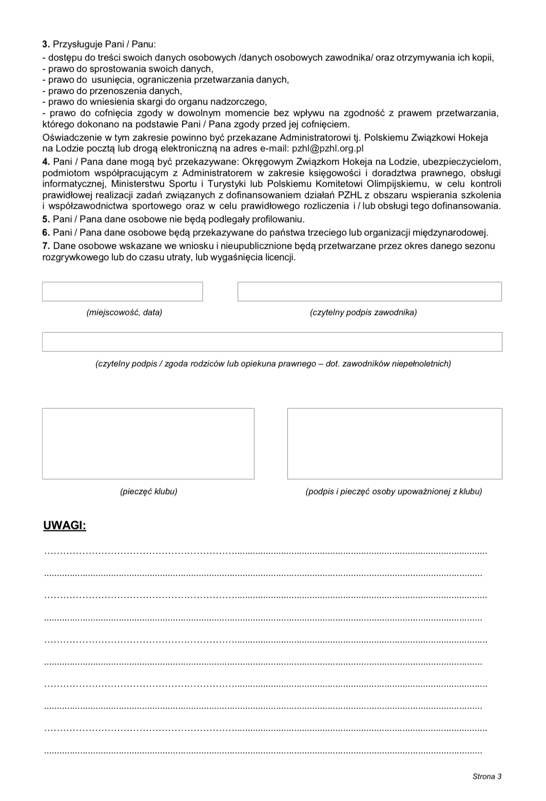 Roczniki 2017 i 2018: Zawodnicy, którzy jeszcze nie posiadają licencji składają wniosek o licencję. Dołączają 2 opisane zdjęcia (nie przyklejać do formularza)