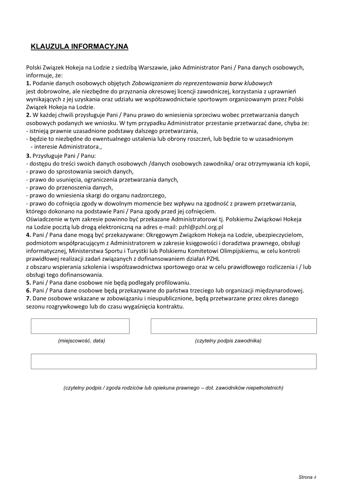 Roczniki 2004-2018: Wszystkie roczniki składają zobowiązania na sezon 2025/2026.( Proszę nie mylić z licencją to oddzielny dodatkowy dokument!) Formularz musi być wypełniony czytelnie, kompletnie, bez skreśleń i zawierać wszystkie podpisy.